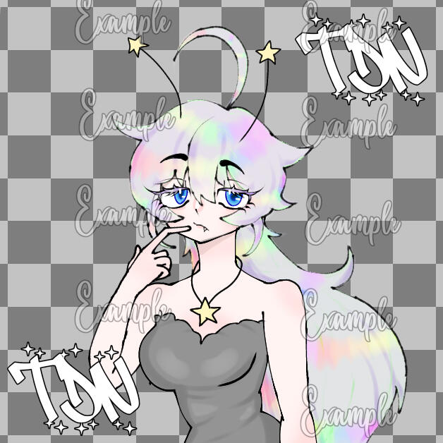 $16 for a goober oc$26 for a PFP or Headshot$36 for a half body$40 for a full body+ $6 for additional details (props, animal sidekicks etc)+ $10 for every additional character in one piece.